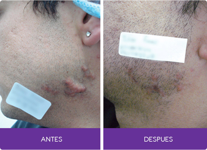 El tratamiento con láser consiste en la aplicación en pulsos muy cortos y repetidos, sobre el área de la cicatriz. Con ello vamos a eliminar los pequeños capilares presentes en las cicatrices, inducimos la producción de nuevo colágeno para rellenar cicatrices deprimidas e inactivamos a las células (fibroblastos) hiperactivos de las cicatrices abultadas.